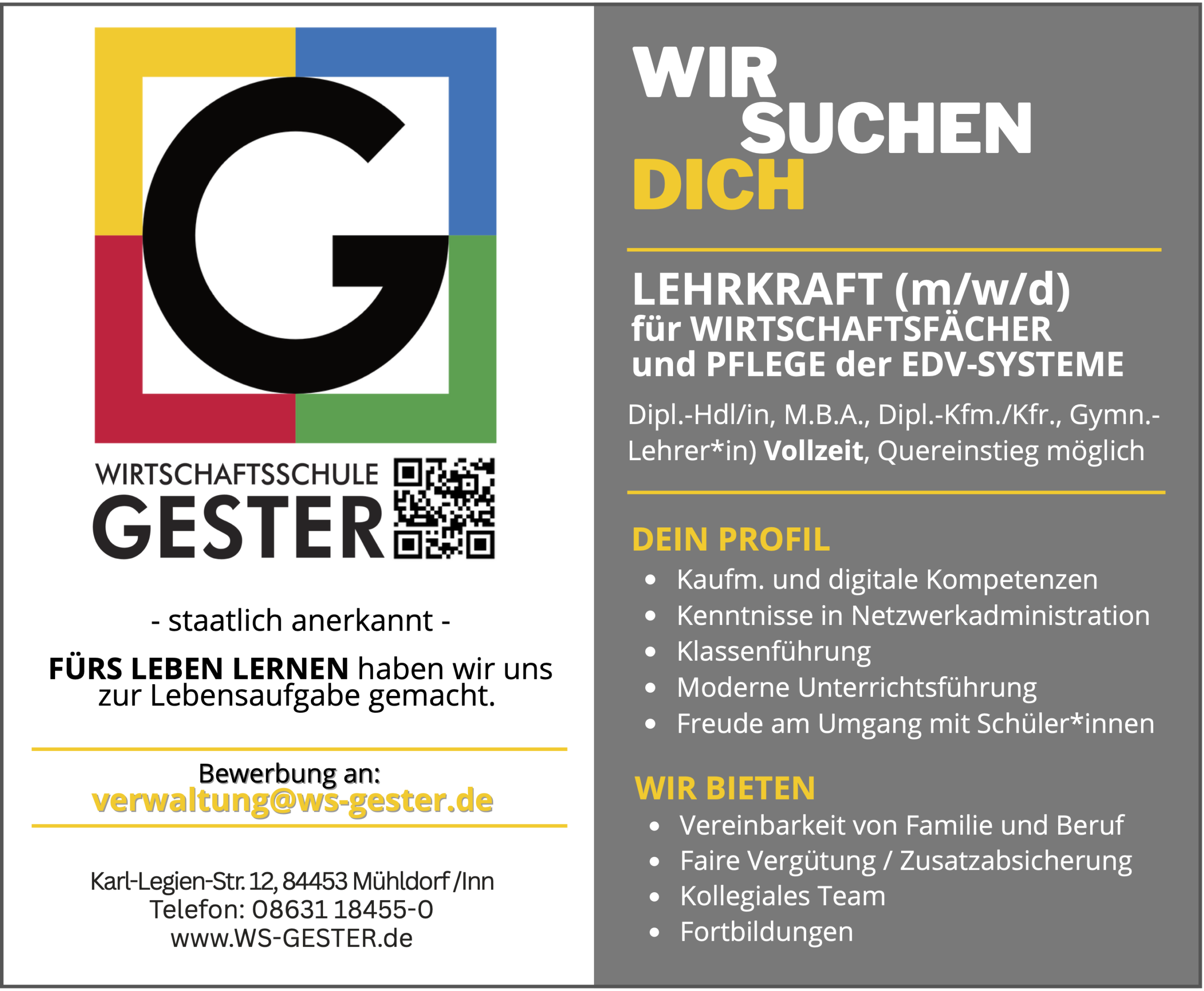 Bewerben Sie sich jetzt und werden Sie Teil unseres Lehrerkollegiums!